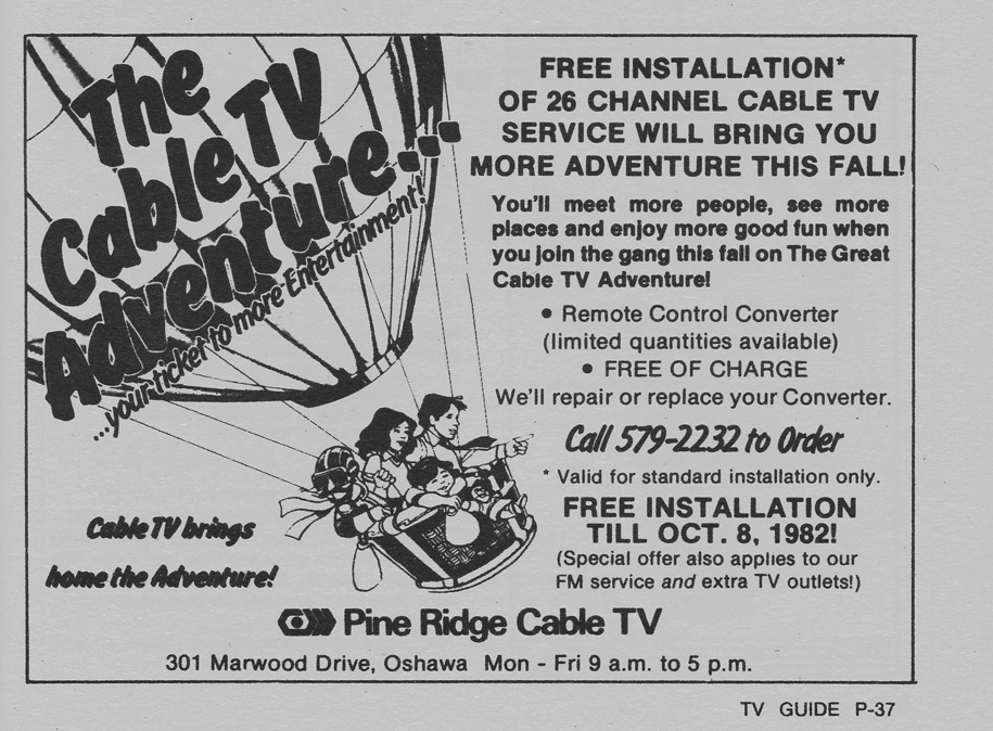 Oshawa Peterborough Edition September 11 1982Oshawa Peterborough Edition CFTO-TV Rocky PromoOshawa Peterborough Edition Rogers Cable PromoOshawa Peterborough Edition CHEX-TV Newhart PromoOshawa Peterborough Edition Global TV NFL Monday Promo
