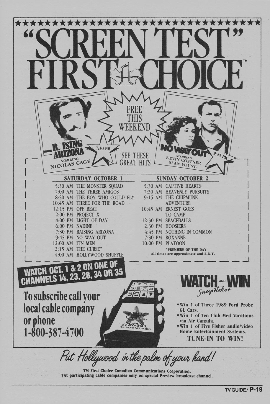 Western Ontario Edition September 9 1989Western Ontario Edition Screen Test First Choice PreviewWestern Ontario Edition Screen Test First Choice Preview