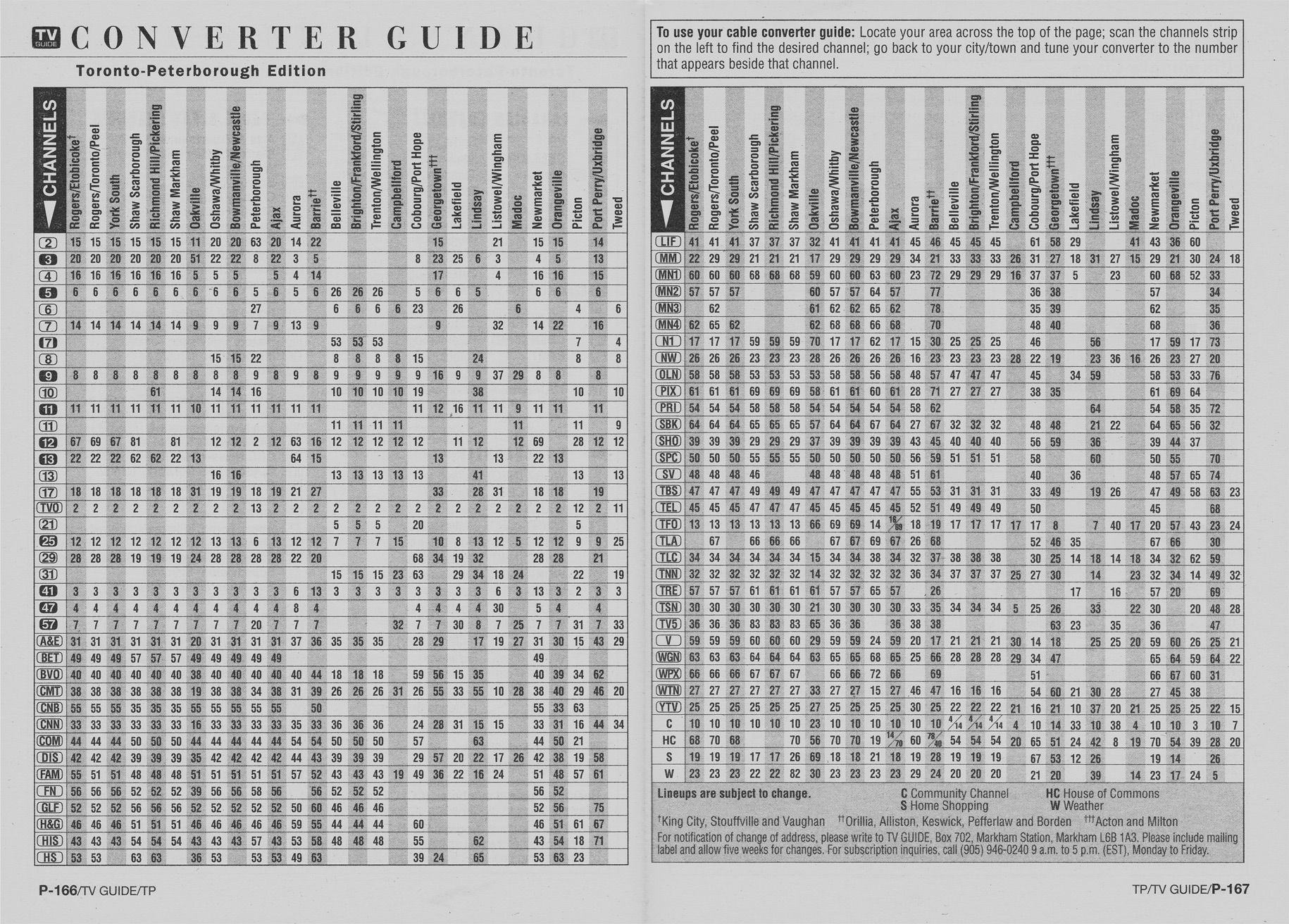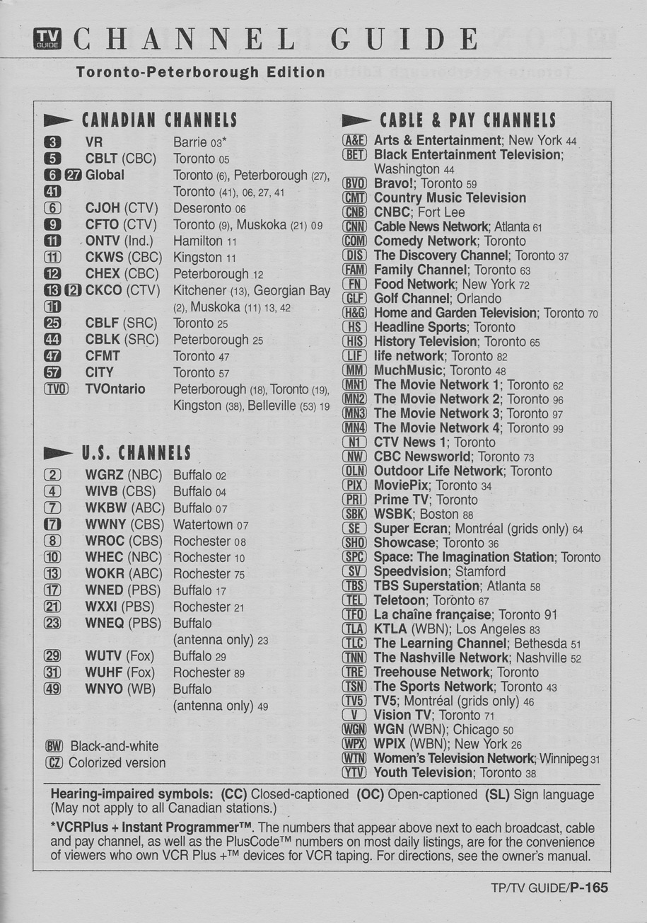Toronto-Peterborough Edition April 11 1998 Toronto-Peterborough Edition Channel Guide Toronto-Peterborough Edition Converter Guide