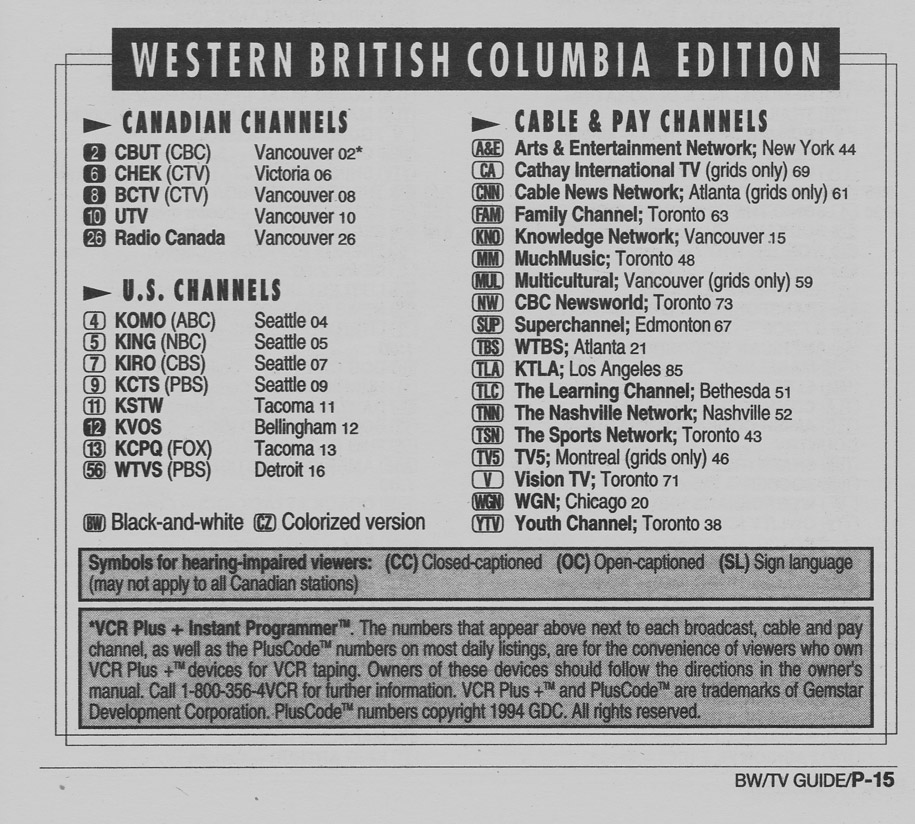 Western British Columbia Edition April 16 1994 Western British Columbia Edition Channels Listed Western British Columbia Edition Cable Converter Guide