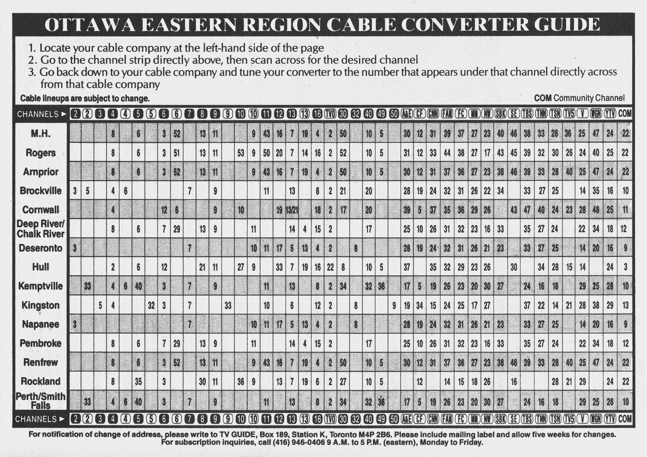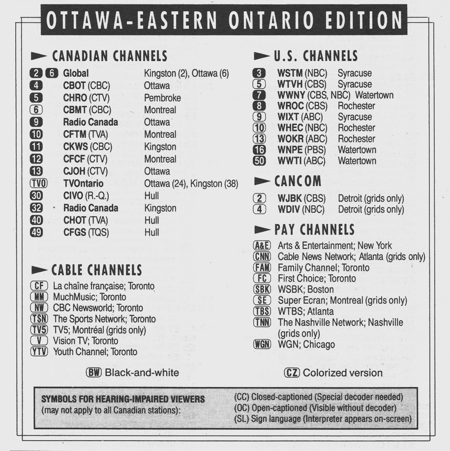 Ottawa-Eastern Ontario Edition April 18 1992 Ottawa-Eastern Ontario Edition Channels Listed Ottawa-Eastern Ontario Edition Cale Converter Guide