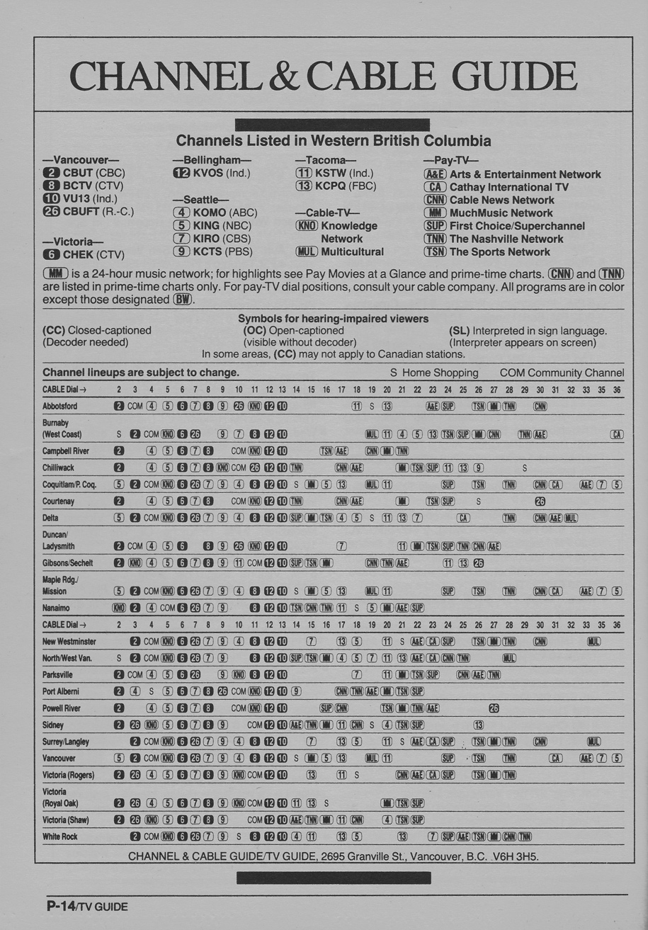 Western British Columbia Edition August 27 1988 Western British Columbia Edition Channel & Cable Guide