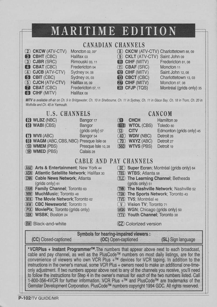 Maritime Edition December 10 1994 Maritime Edition Channels Listed Maritime Edition Cable Converter Guide