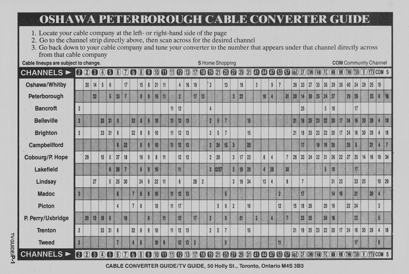 Oshawa-Peterborough Edition December 30 1989 Oshawa-Peterborough Edition Channels Listed Oshawa-Peterborough Edition Cable Converter Guide
