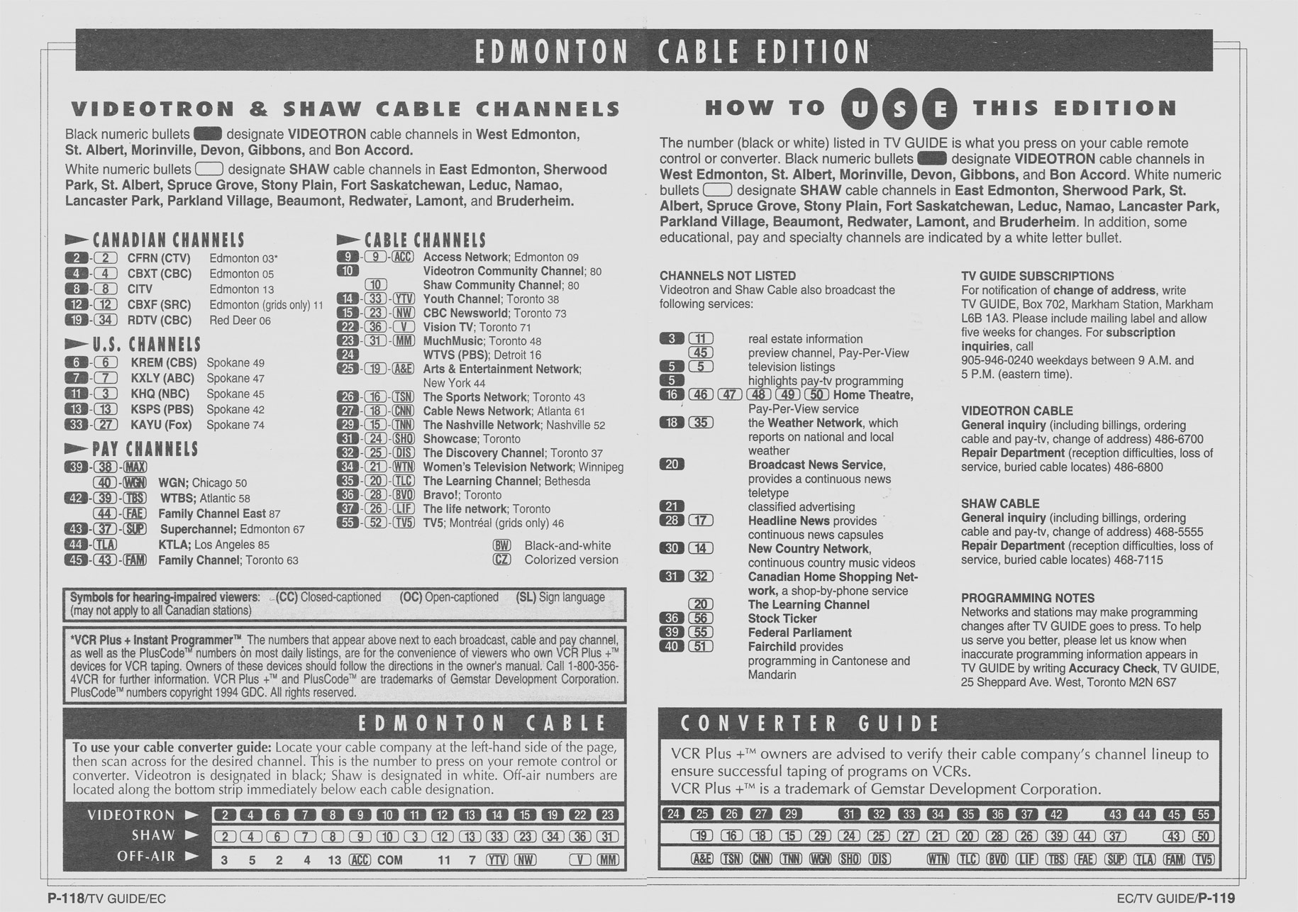 Edmonton Cable Edition December 31 1994 Edmonton Cable Edition Cable Converter Guide Edmonton Cable Edition New Specialty Channels