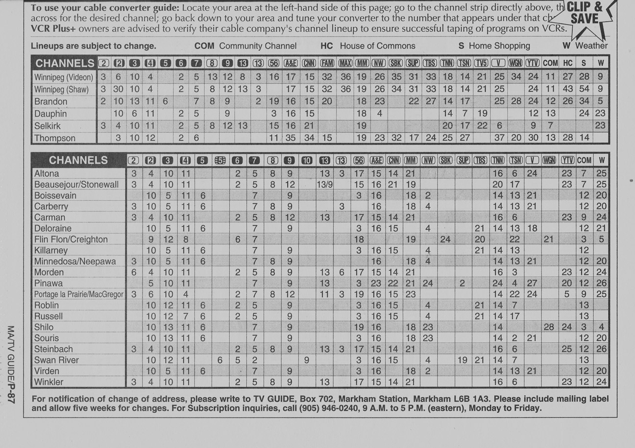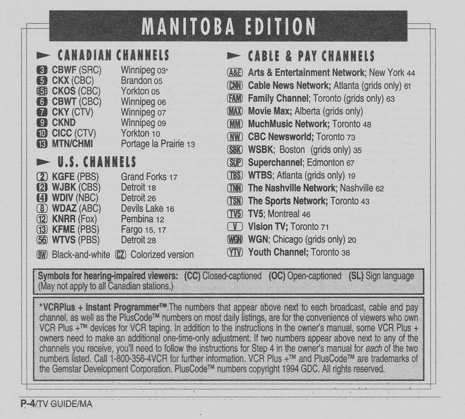 Manitoba Edition December 3 1994 Manitoba Edition Channels Listed Manitoba Edition Cable Converter Guide