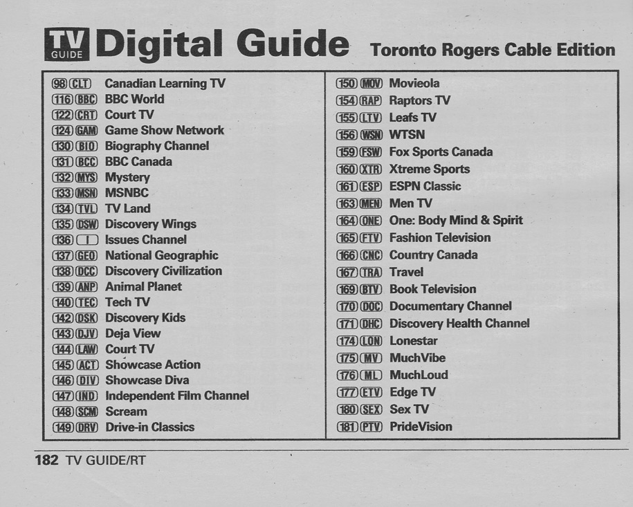 Toronto Rogers Cable Edition January 19 2002 Toronto Rogers Cable Edition Channel Guide Toronto Rogers Cable Edition Digital Guide