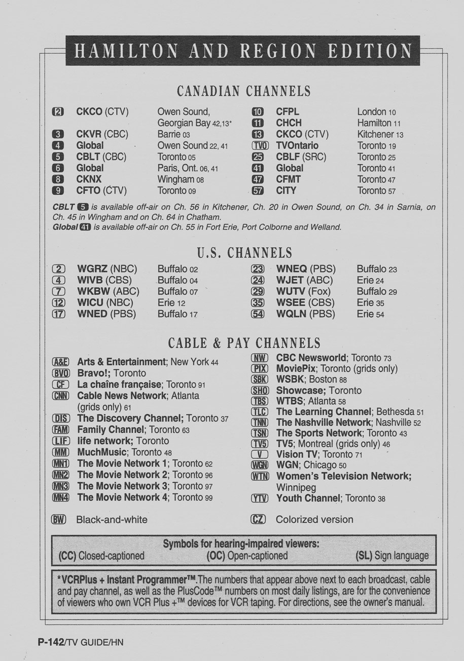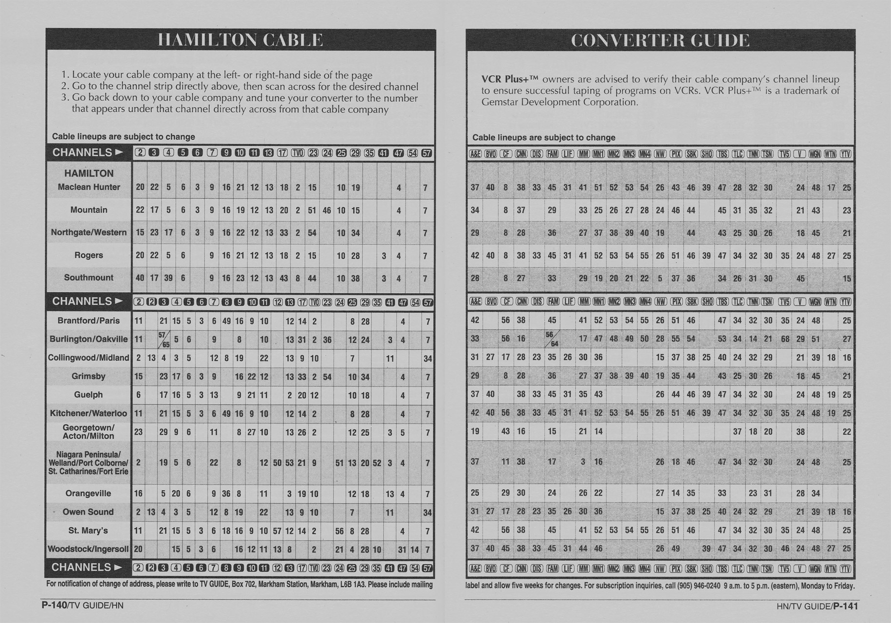 Hamilton & Region Edition January 28 1995 Hamilton & Region Edition Channels Listed Hamilton & Region Edition Cable Converter Guide