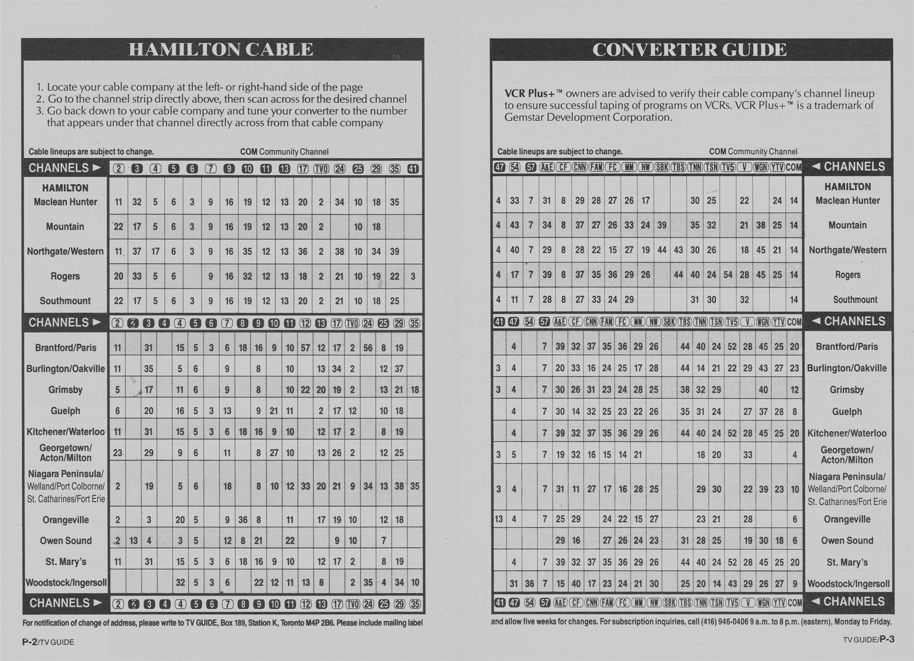 Hamilton & Region Edition January 4 1992 Hamilton & Region Edition Channels Listed Hamilton & Region Edition Cale Converter Guide