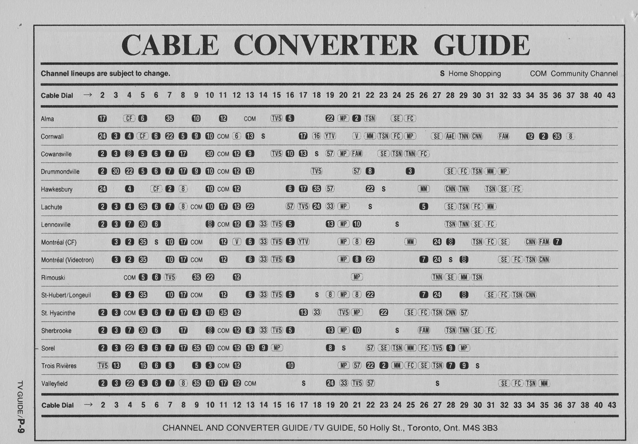 Montreal Edition January 7 1989 Montreal Edition Channels Listed Montreal Edition Cable Converter Guide