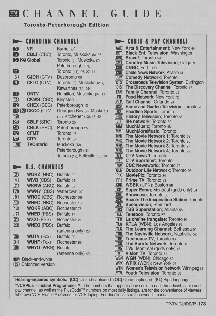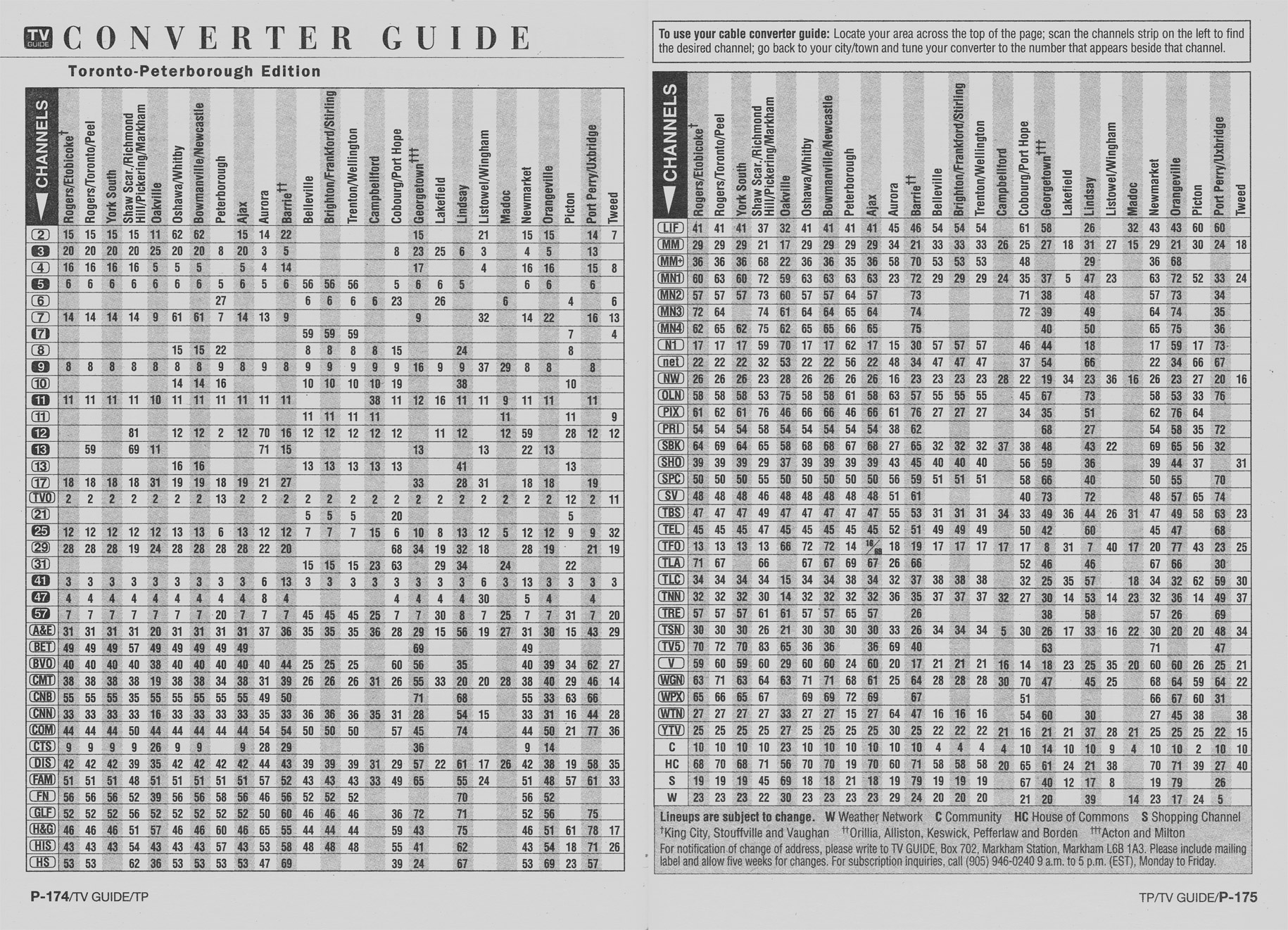 Toronto-Peterborough Edition January 9 1999 Toronto-Peterborough Edition Channel Guide Toronto-Peterborough Edition Converter Guide