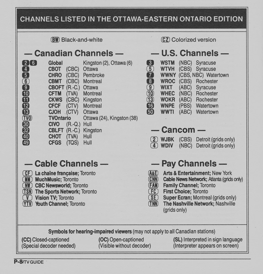 Ottawa-Eastern Ontario Edition July 20 1991 Ottawa-Eastern Ontario Edition Channels Listed Ottawa-Eastern Ontario Edition Cable Converter Guide