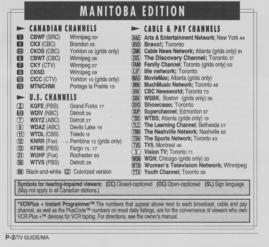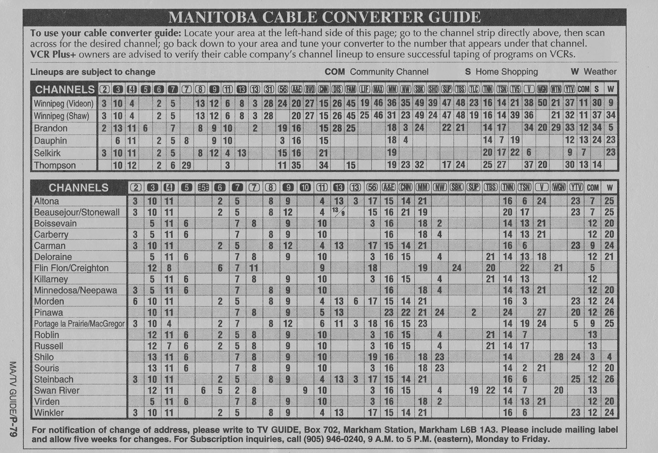 Manitoba Edition June 17 1995 Manitoba Edition Channels Listed Manitoba Edition Cable Converter Guide