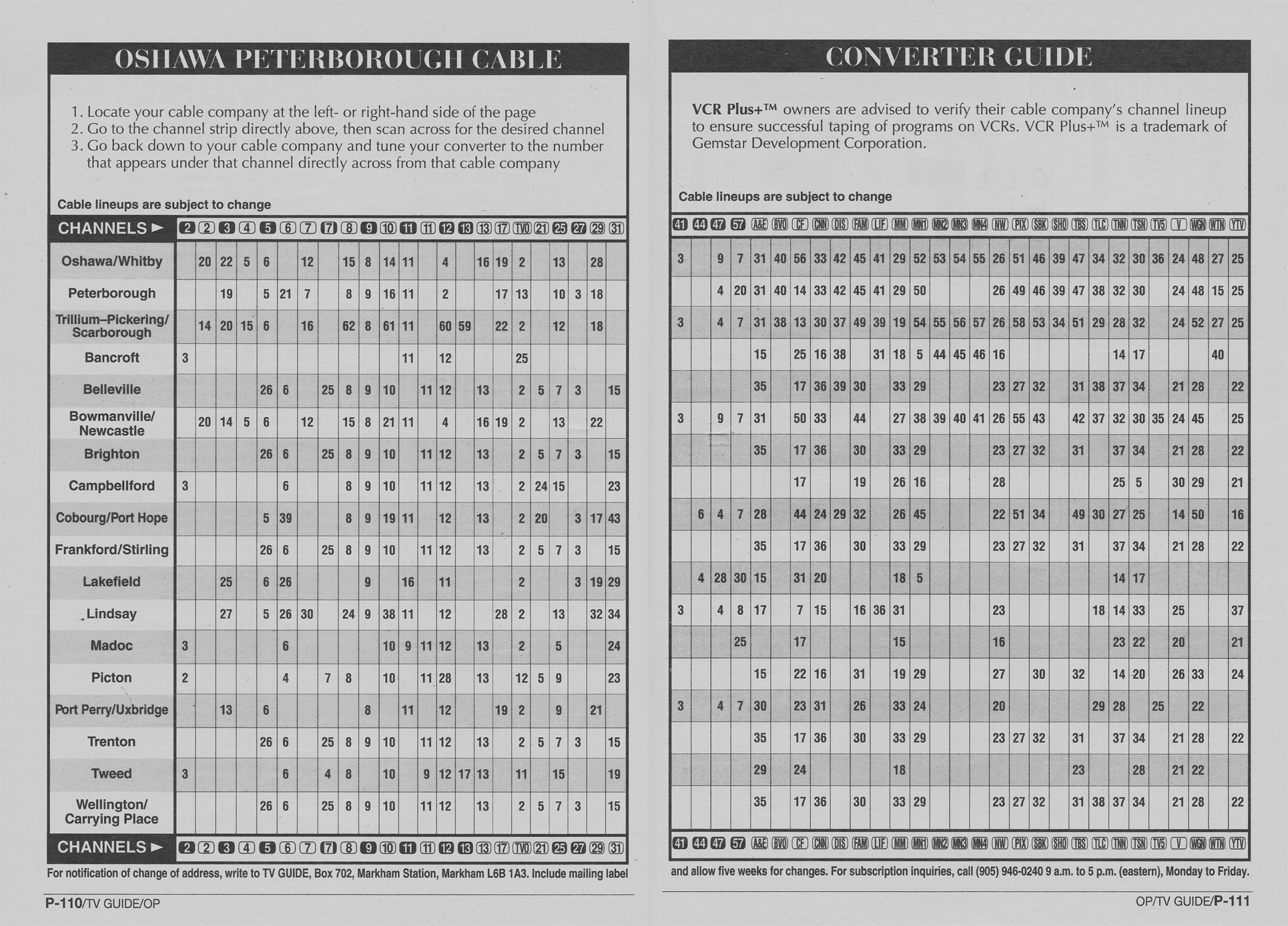 Oshawa-Peterborough Edition June 17 1995 Oshawa-Peterborough Edition Channels Listed Oshawa-Peterborough Edition Cable Converter Guide