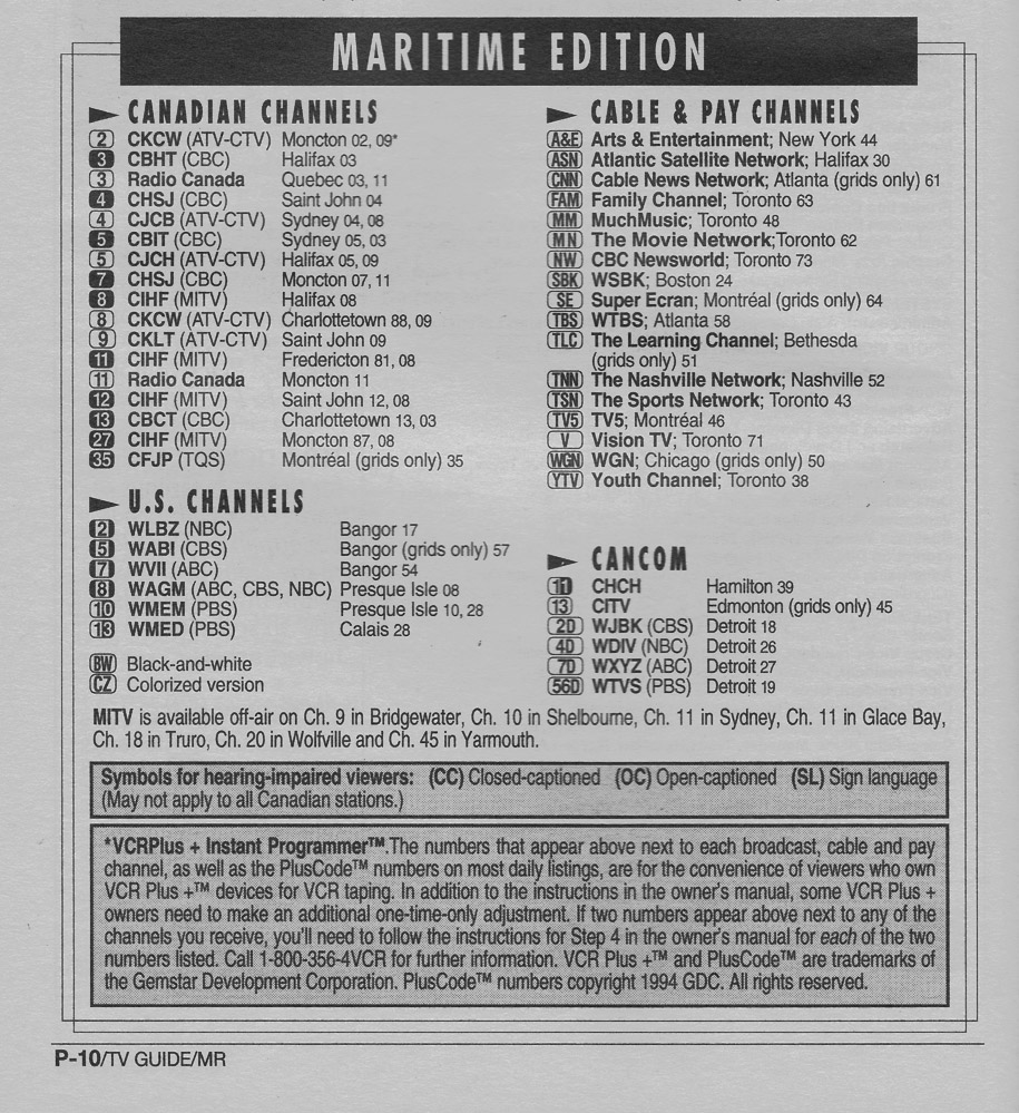 Maritime Edition June 18 1994 Maritime Edition Channels Listed Maritime Edition Cable Converter Guide