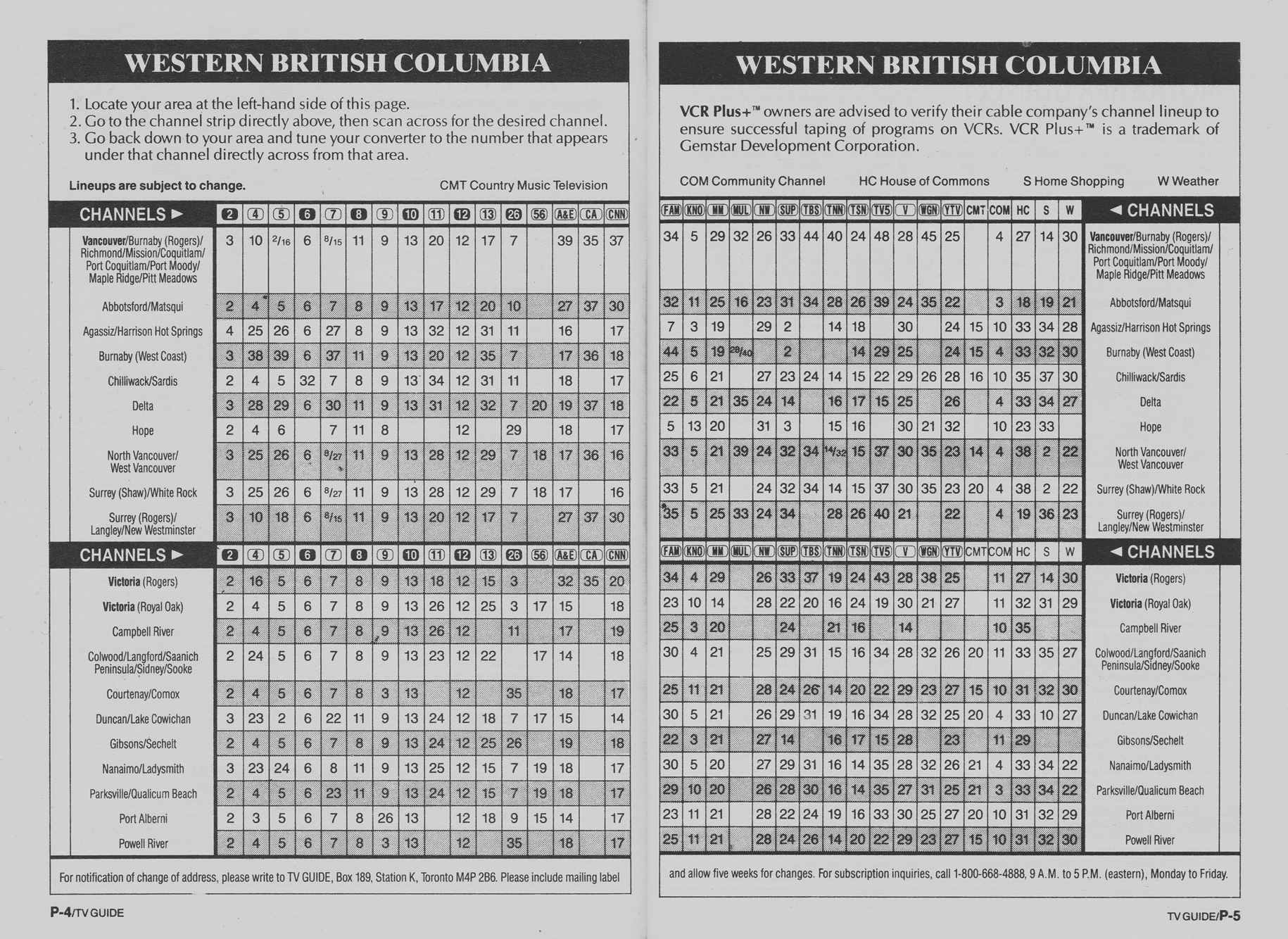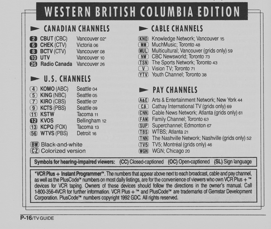 Western British Columbia Edition March 21 1992 Western British Columbia Edition Channels Listed Western British Columbia Edition Cale Converter Guide
