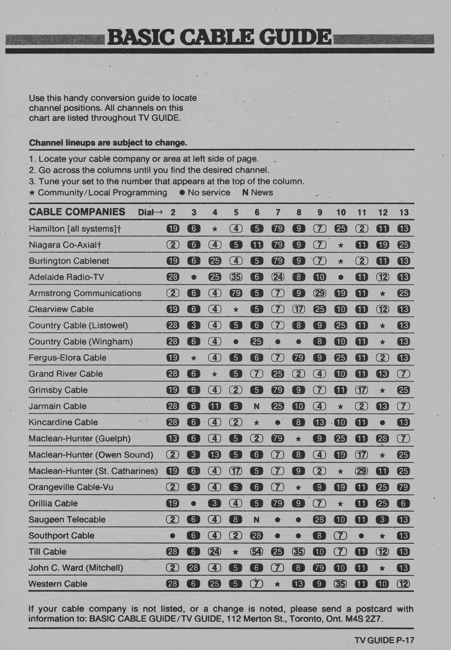 Hamilton & Region Edition March 27 1982 Hamilton & Region Edition Channels Listed Hamilton & Region Edition Basic Cable Guide