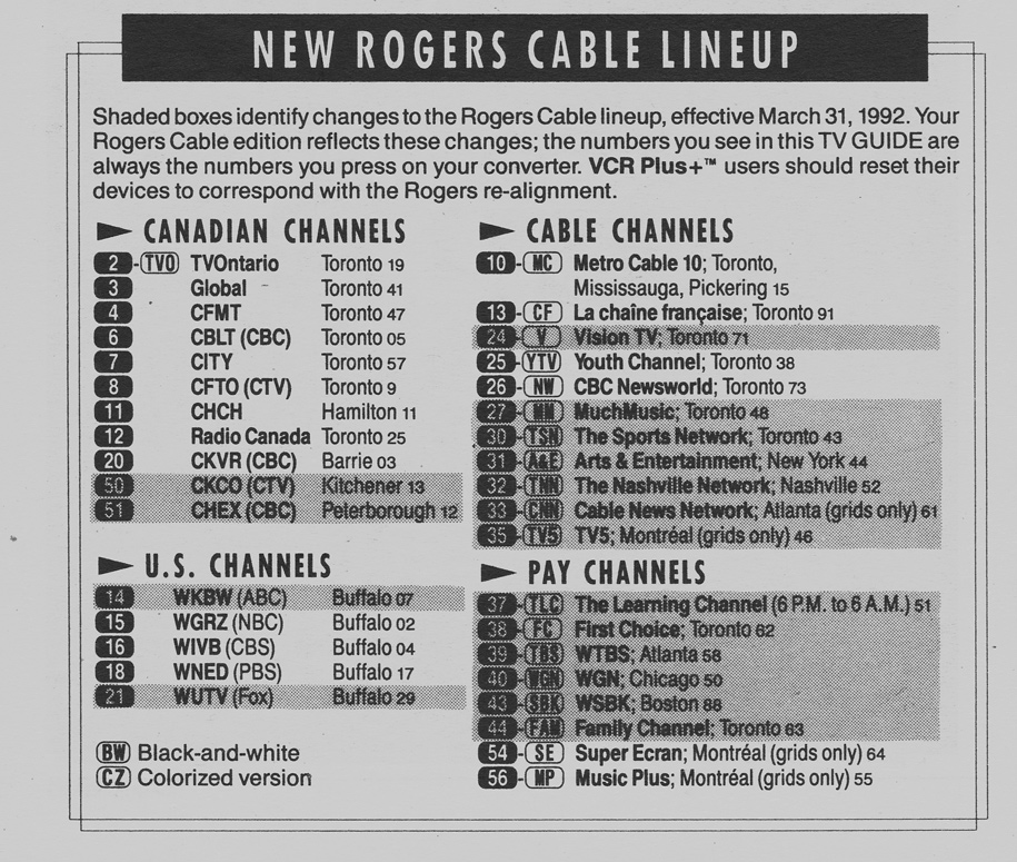 Toronto Rogers Cable Edition March 28 1992 Toronto Rogers Cable Edition Cale Converter Guide Toronto Rogers Cable Edition New Rogers Cable Line-up