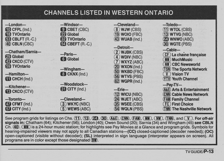 Western Ontario Edition May 5 1990 Western Ontario Edition Channels Listed Western Ontario Edition Cable Converter Guide