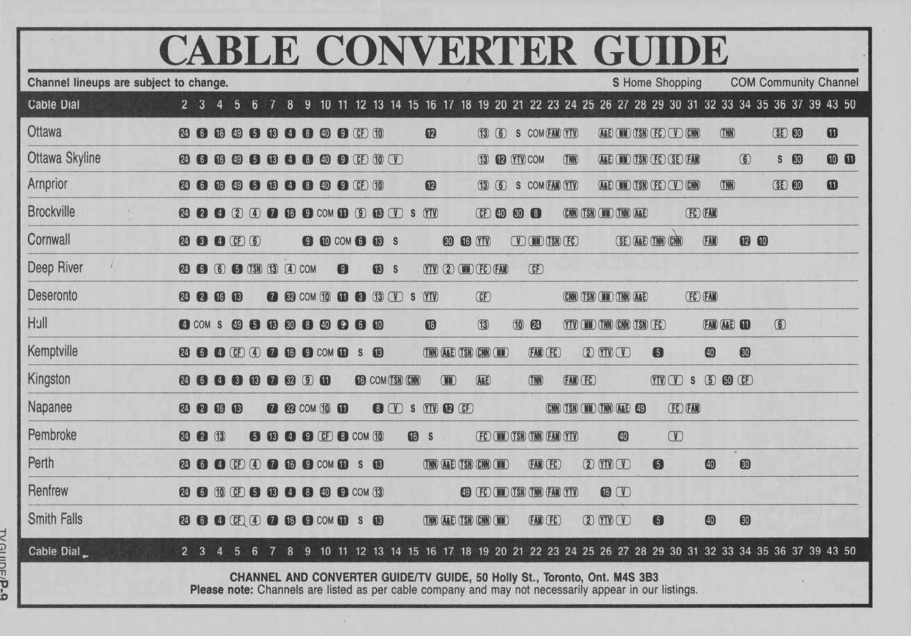 Ottawa-Eastern Ontario Edition May 6 1989 Ottawa-Eastern Ontario Edition Channels Listed Ottawa-Eastern Ontario Edition Cable Converter Guide