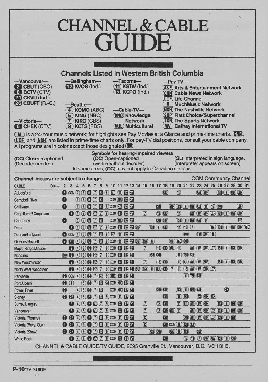 Western British Columbia Edition November 16 1985 Western British Columbia Edition Channel & Cable Guide