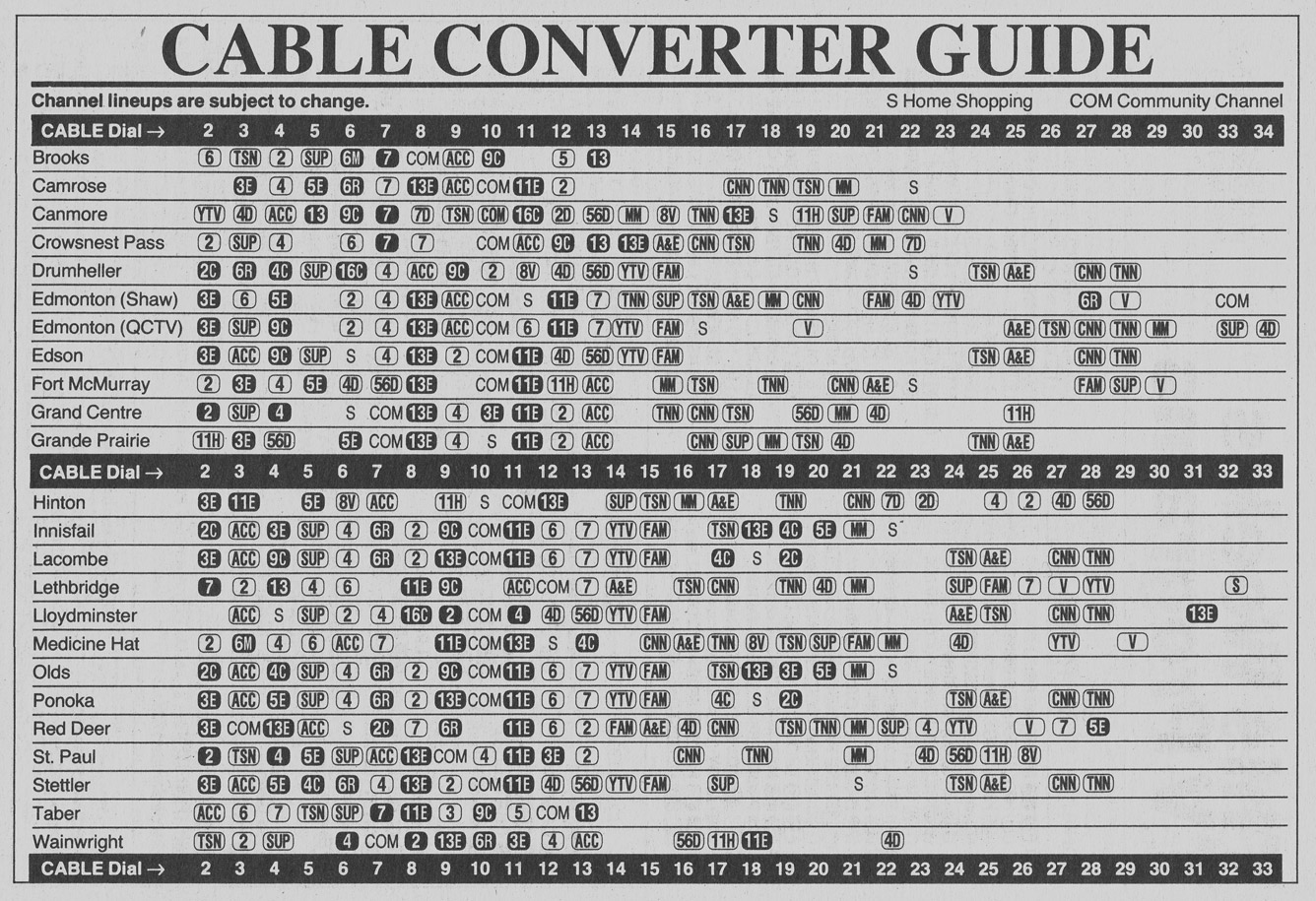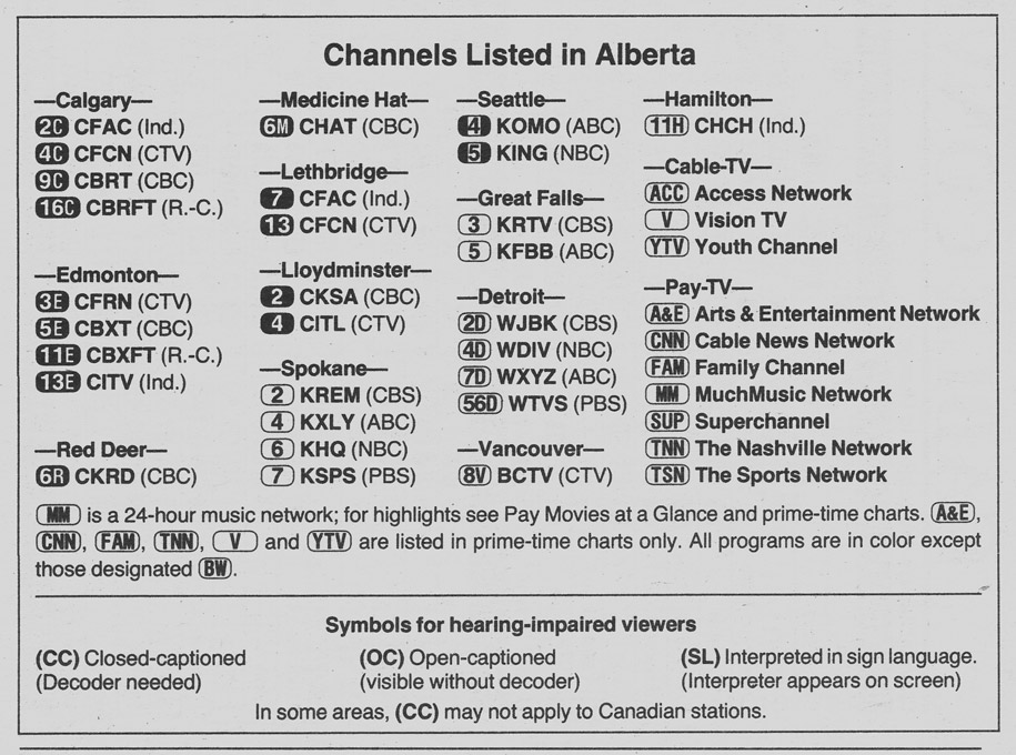 Alberta Edition November 19 1988 Alberta Edition Channels Listed Alberta Edition Cable Converter Guide