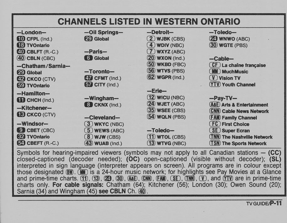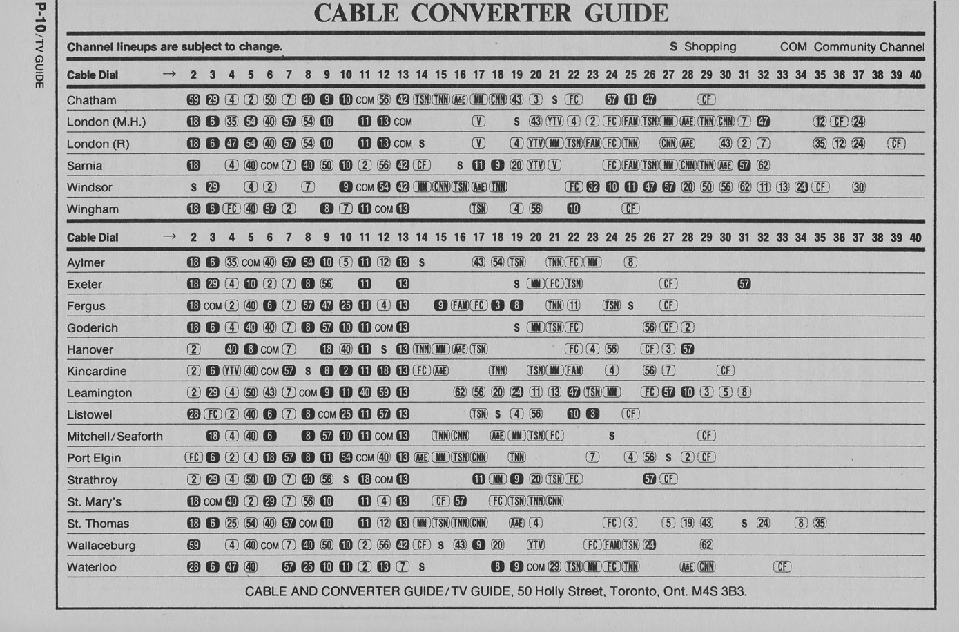 Western Ontario Edition October 1 1988 Western Ontario Edition Channels Listed Western Ontario Edition Cable Converter Guide