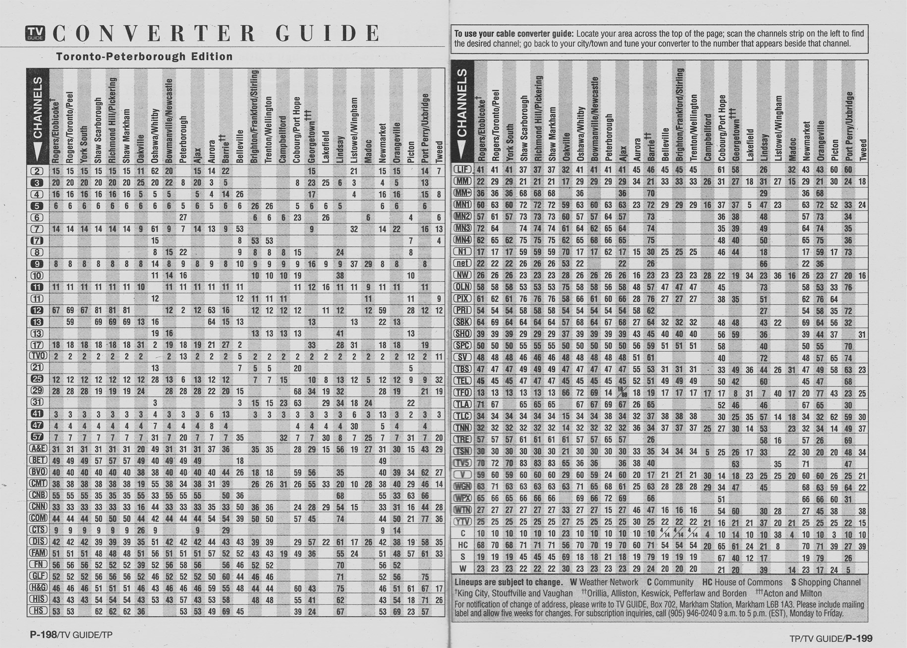 Toronto-Peterborough Edition October 17 1998 Toronto-Peterborough Edition Channel Guide Toronto-Peterborough Edition Converter Guide