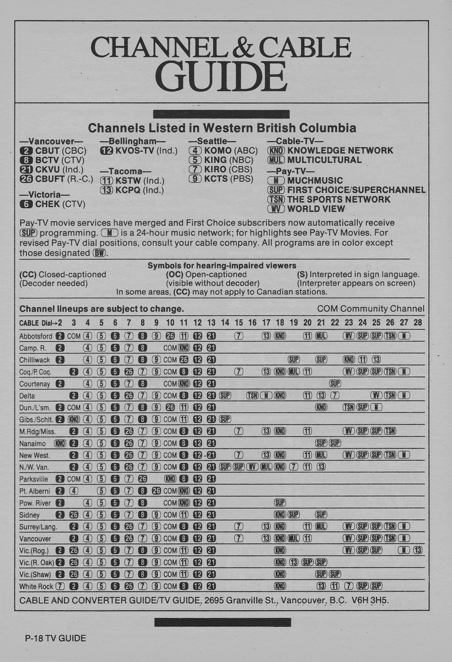 Western British Columbia Edition October 27 1984 Western British Columbia Edition Channel & Cable Guide