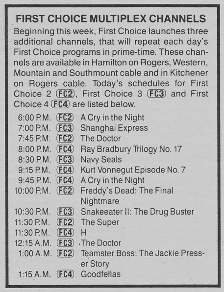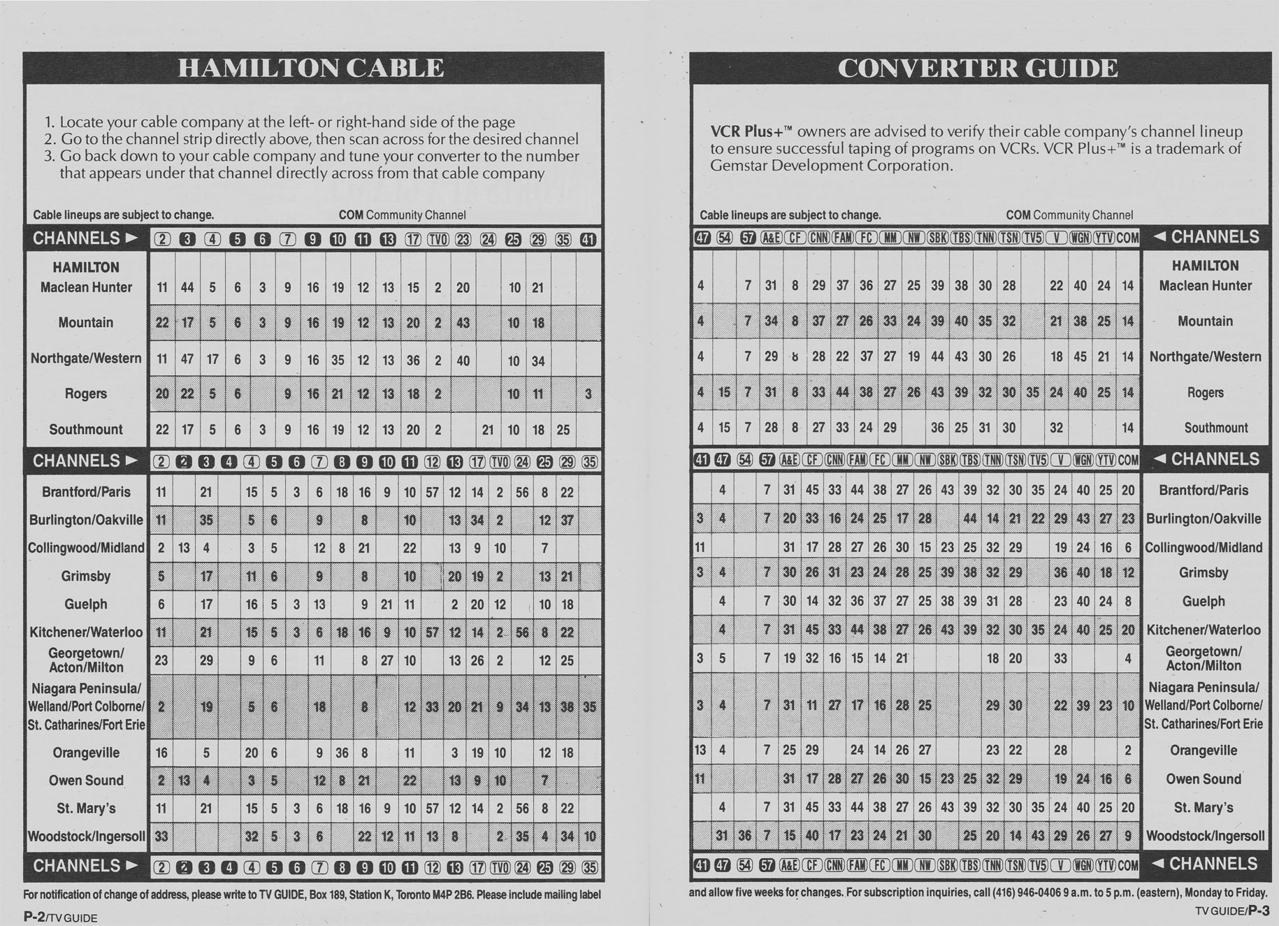 Hamilton & Region Edition October 3 1992 Hamilton & Region Edition Channels Listed Hamilton & Region Edition Cable Converter GuideHamilton & Region Edition First Choice Multiplex Channels