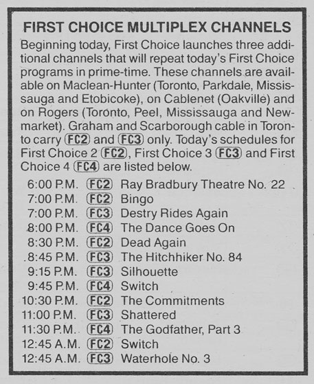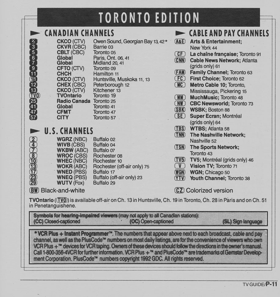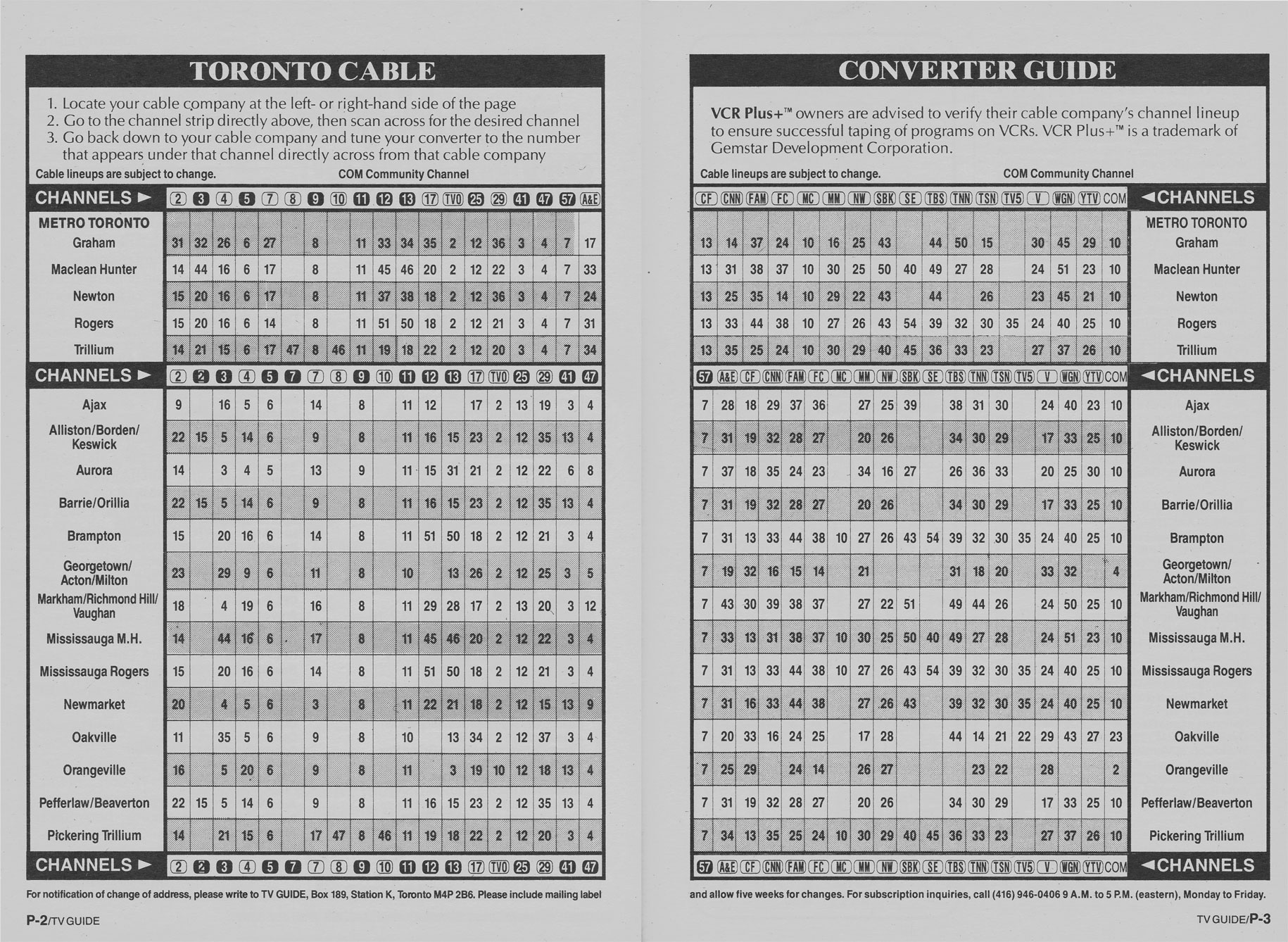 Toronto Edition October 3 1992 Toronto Edition Channels Listed Toronto Edition Cable Converter GuideToronto Edition First Choice Multiplex Channels