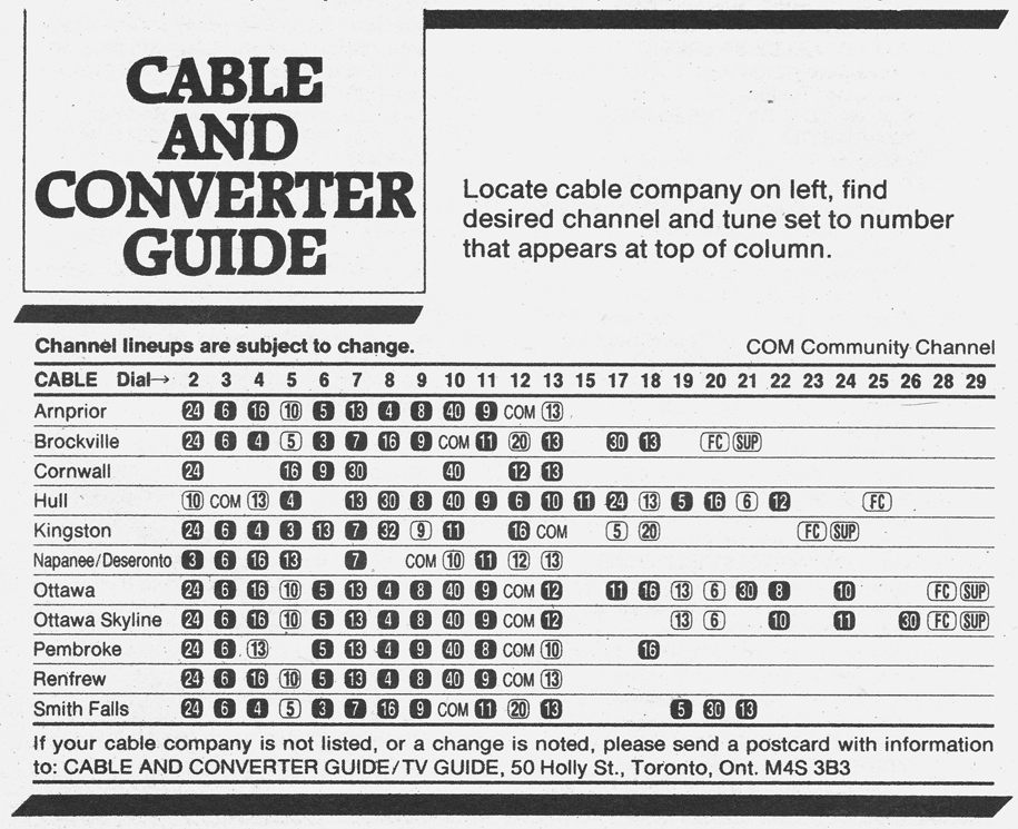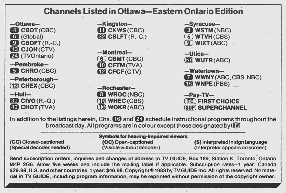 Ottawa-Eastern Ontario Edition October 8 1983 Ottawa-Eastern Ontario Edition Channels Listed Ottawa-Eastern Ontario Edition Cable & Converter Guide