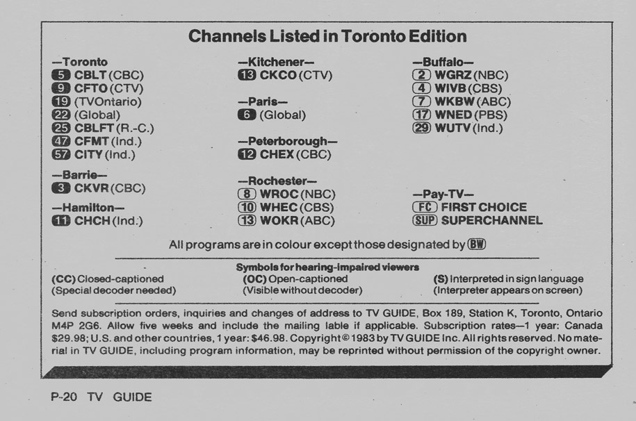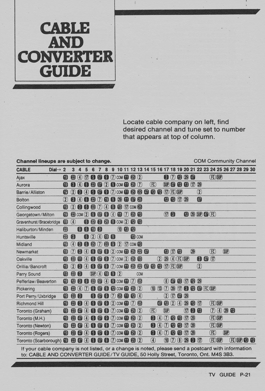 Toronto Edition September 10 1983 Toronto Edition Channels Listed Toronto Edition Cable & Converter Guide