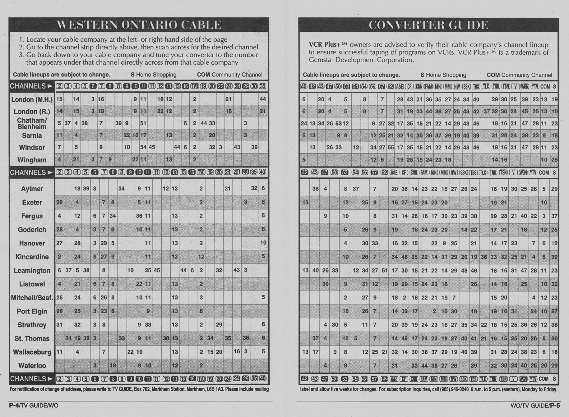 Western Ontario Edition September 10 1994 Western Ontario Edition Channels Listed Western Ontario Edition Cable Converter Guide