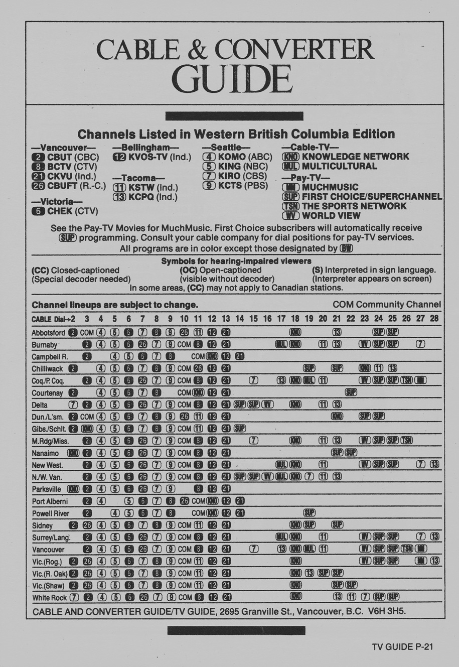 Western British Columbia Edition September 1 1984 Western British Columbia Edition Cable & Converter Guide