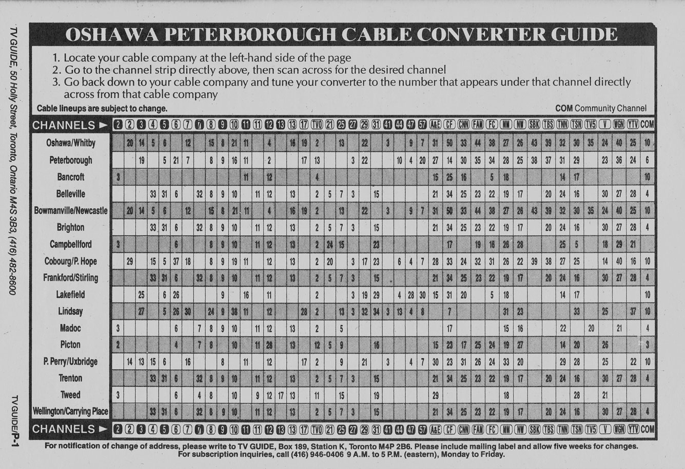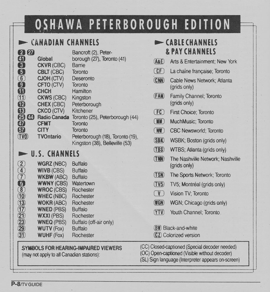 Oshawa-Peterborough Edition September 12 1992 Oshawa-Peterborough Edition Channels Listed Oshawa-Peterborough Edition Cable Converter Guide
