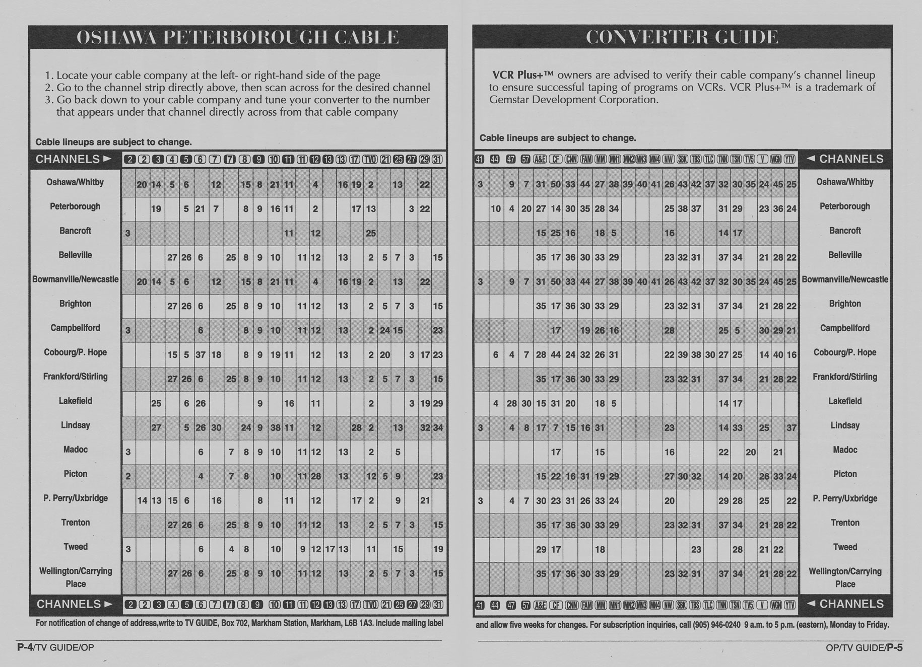 Oshawa-Peterborough Edition September 17 1994 Oshawa-Peterborough Edition Channels Listed Oshawa-Peterborough Edition Cable Converter Guide
