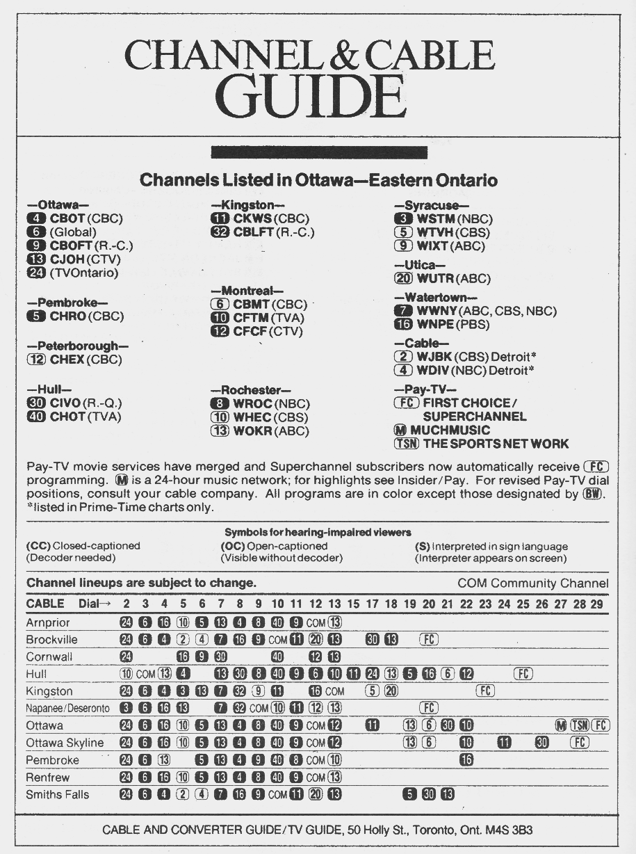 Ottawa-Eastern Ontario Edition September 29 1984 Ottawa-Eastern Ontario Edition Channel & Cable Guide