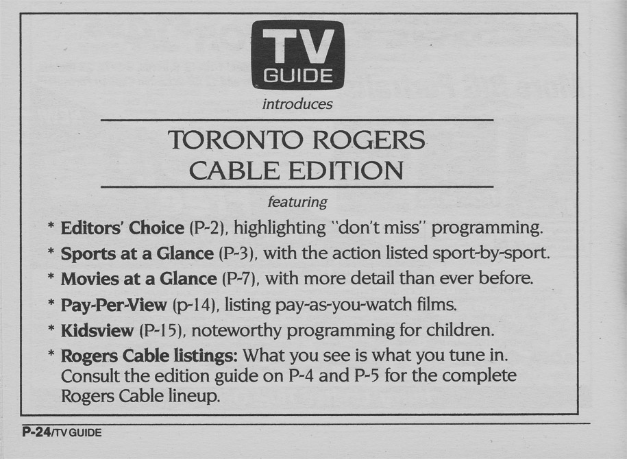 Toronto Rogers Cable Edition September 7 1991 Toronto Rogers Cable Edition Converter Guide Toronto Rogers Cable Edition New Edition