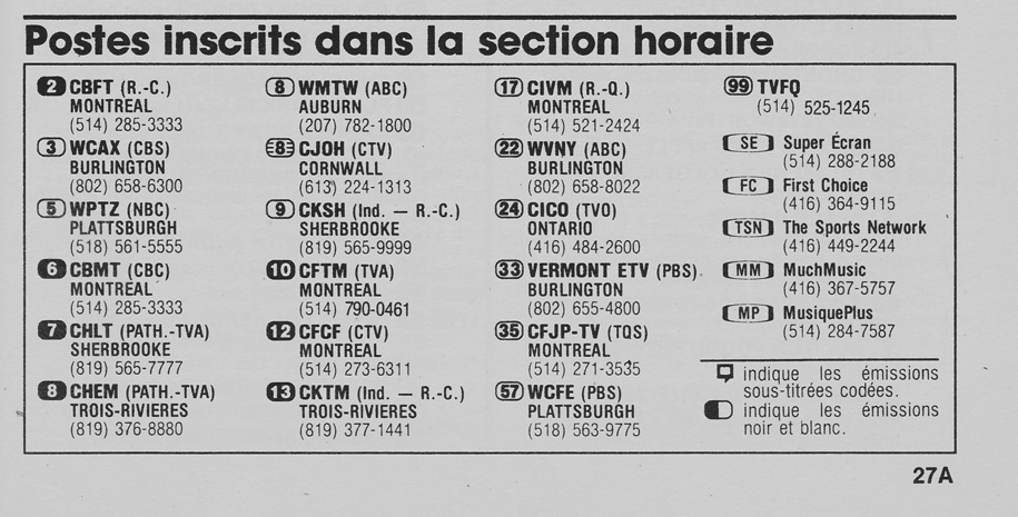 TV Hebdo Édition Métropolitaine (Montréal) December 5 1987 TV Hebdo Édition Métropolitaine (Montréal) Postes inscrits dans la section horaire